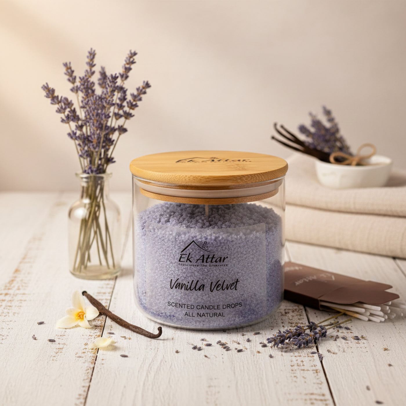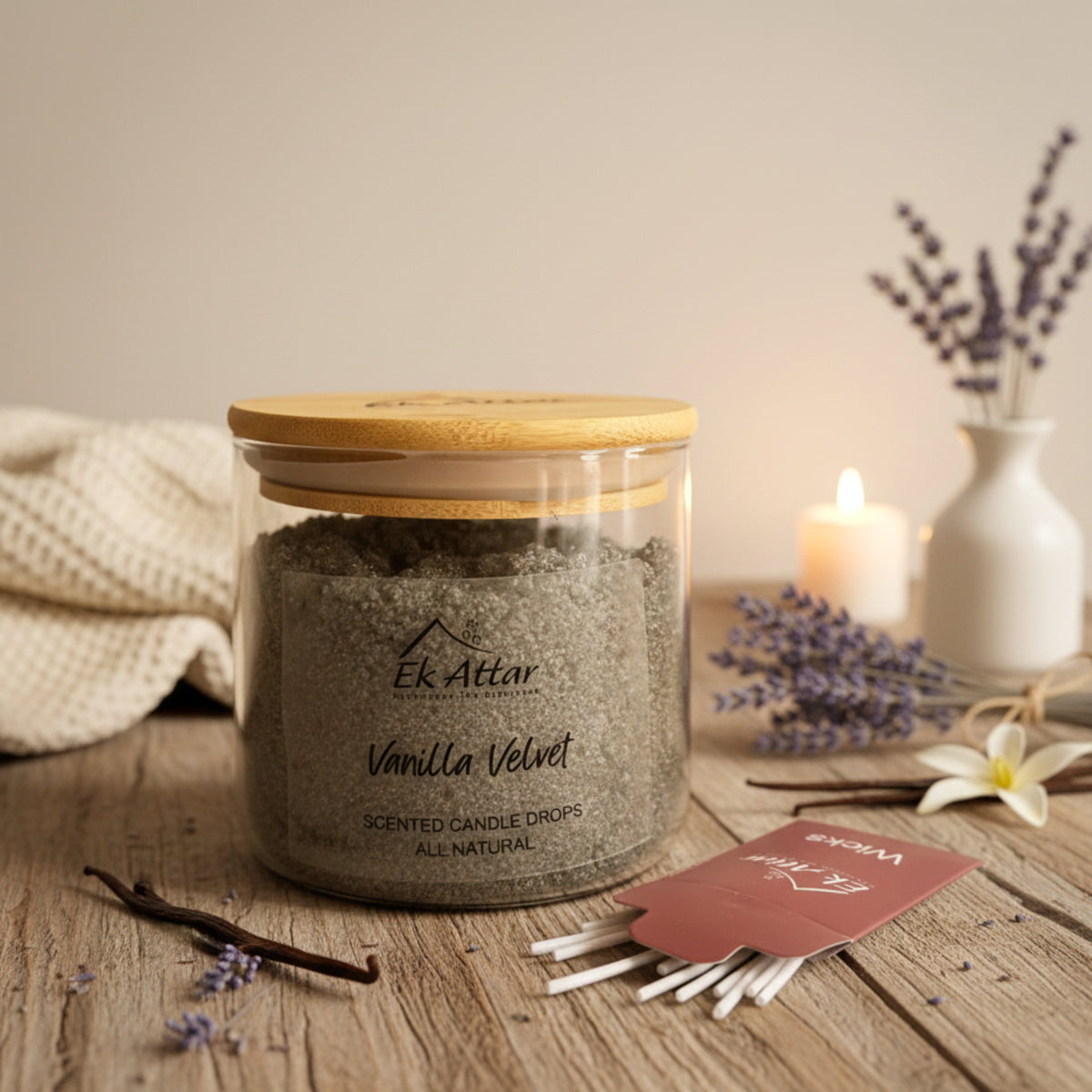 Bring fragrance, warmth, and creativity into your space with Ek Attar Candle Drops (Fragranced Sand Candles), India’s innovative refillable candle format that lets you turn any jar into a beautiful candle.